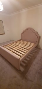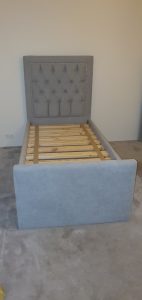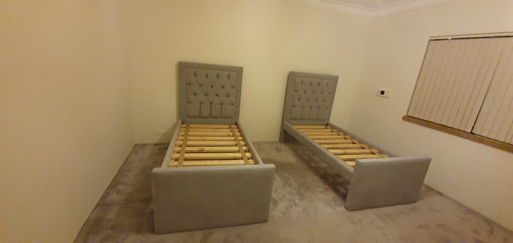 The most important feature in any bedroom is the bed and it needs to have warmth and beauty. Velvet has got to be the most luxurious fabric to add in the bedroom and even better a fully upholstered velvet bed. We recently made these 5 custom designed beds for a client and each bed had to complement each individual and age group (see photos below). The Grand master bedroom was a king size bed in a champagne colored velvet with studs, the 2 x queen beds in a dusty pink fabric and studs and blue velvet with a paneled bedhead and wings and last but not least 2 x single beds in a light blue fabric with traditional deep buttoned tufting and chrome studding. The quality of the frames we handcraft are as solid as a rock. The slats are 35mm thick and screwed onto the side rails which are one piece pine timber so you can be certain our beds can stand the test of durability.