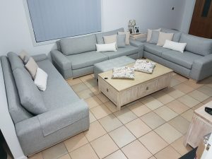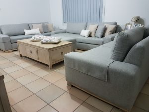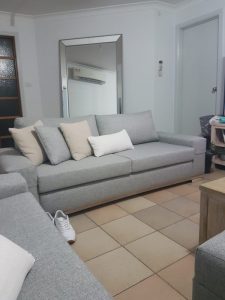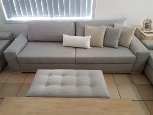 These lounges were once upon a time purchased from Harvey Norman, The previous fabric was brown and almost 10 years old and in need of some new upholstery and love. The customer wanted a cool and relaxing color so we recovered these in a light grey fabric with some beige and white cushions and sanded back the legs for a natural look. It was a big difference from the brown fabric and really brighten up the living room. At Deluxe upholstery in Sydney we’re dedicated in providing a quality upholstery service giving 100% to put a smile on our clients’ faces.